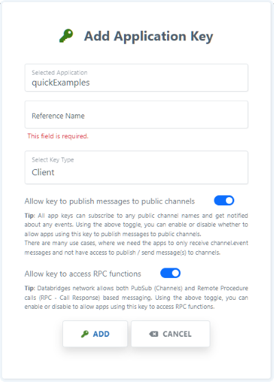 You can enable or disable whether to allow apps using this key to publish messages to public channels. There are many use cases, where we need the apps to only receive channel.event messages and not have access to publish / send message(s) to channels.